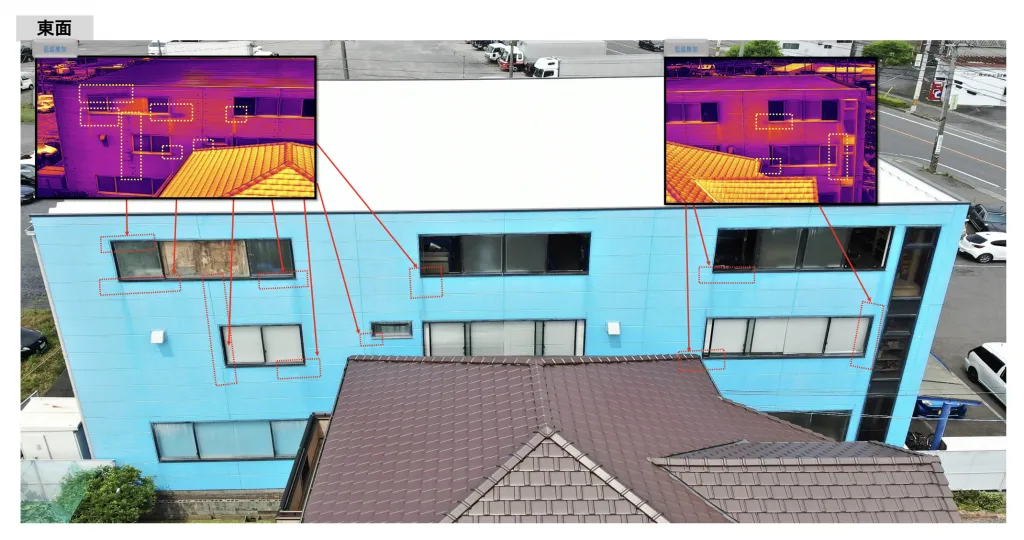 以上のようにドローンの赤外線外壁調査は、正確な損傷箇所を把握するための調査として最適です。
