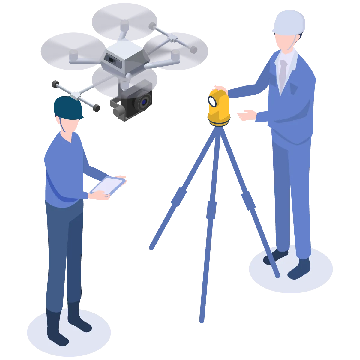 ドローンを活用することで、短時間で広範囲の測量が可能に。